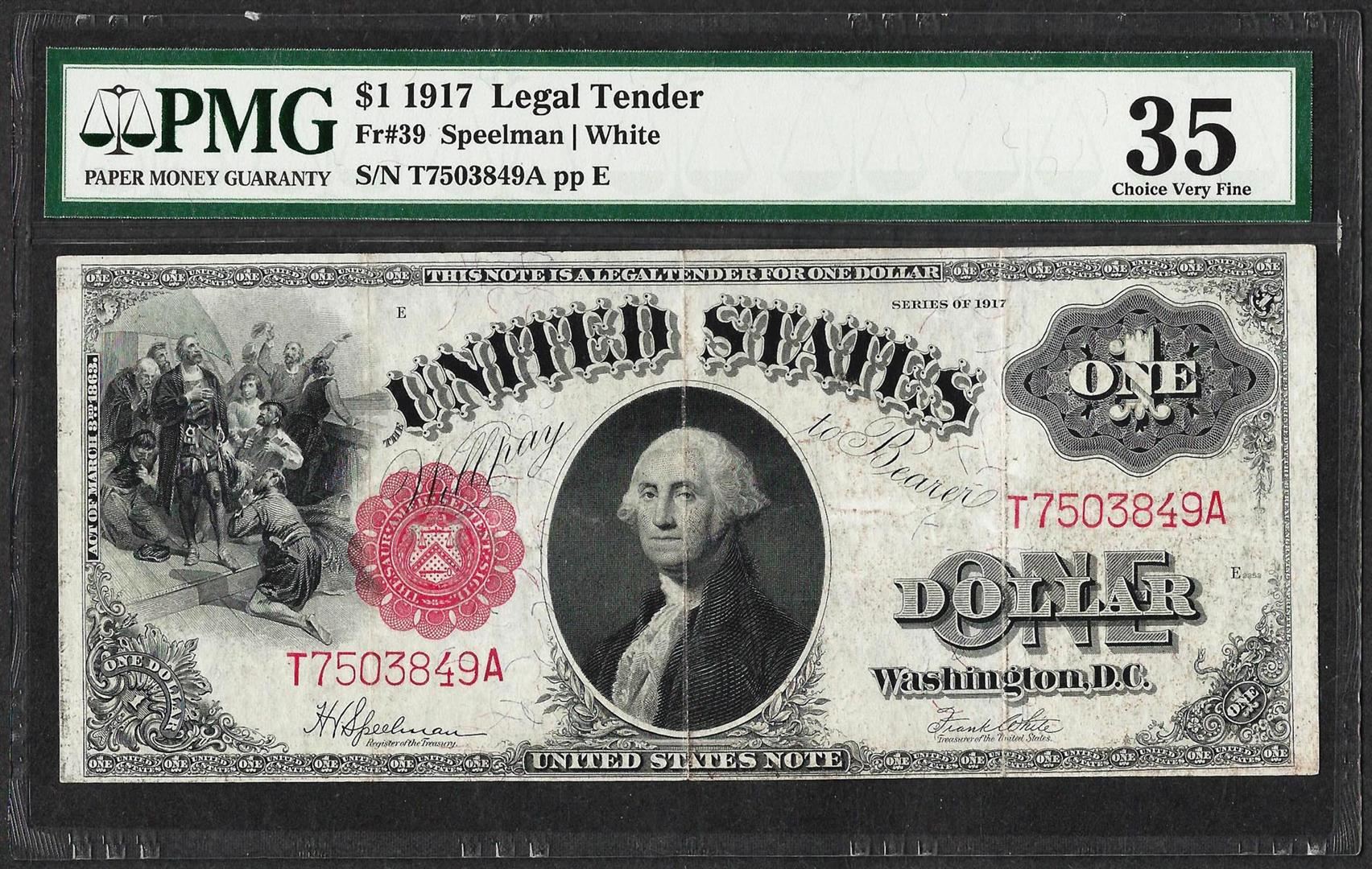 One 1917 $1 Legal Tender Note Fr.39 PMG Choice Very Fine 35. PMG Certified.
