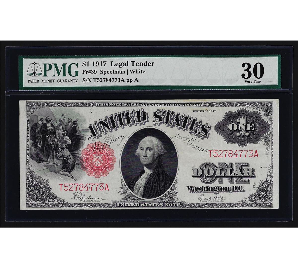 One 1917 $1 Legal Tender Note PMG VF30. PMG Certified.