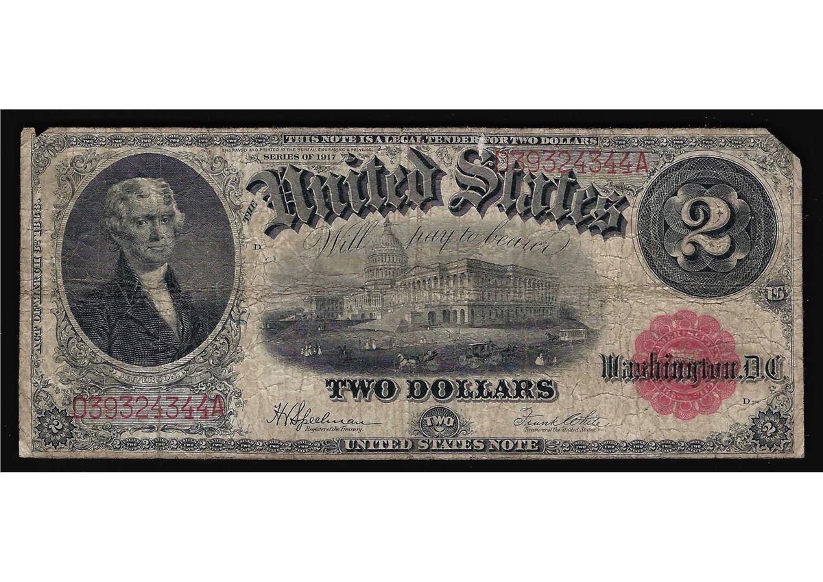 One 1917 $2 Large Size Legal Tender Note.