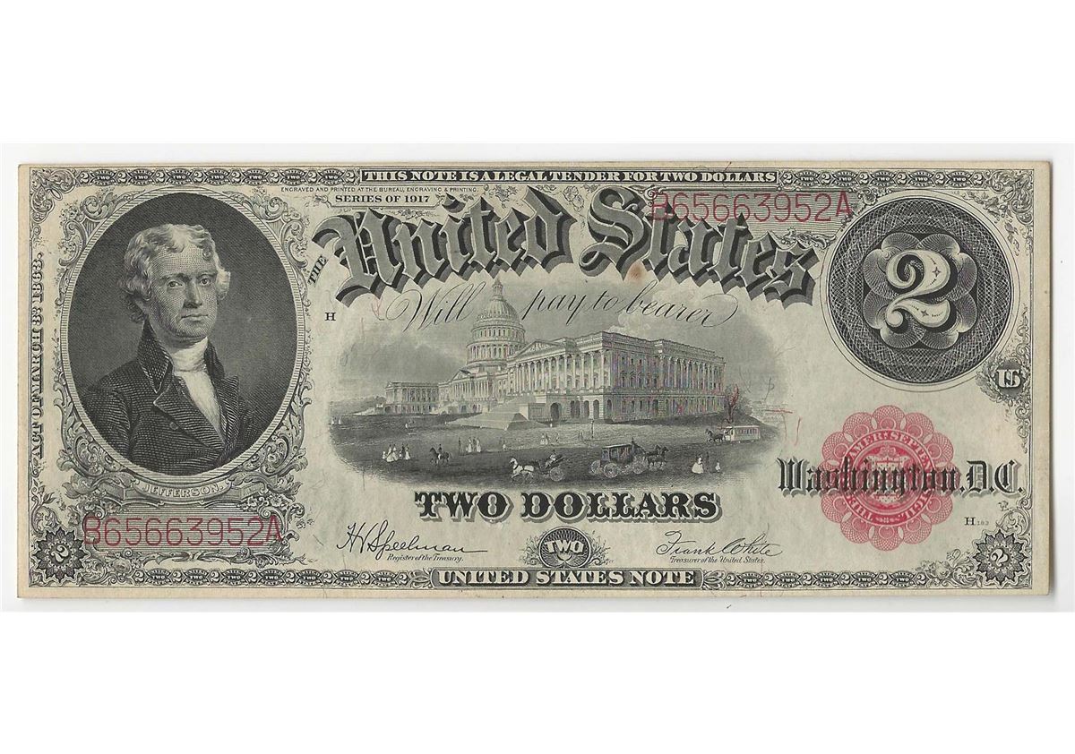 One 1917 $2 Legal Tender Note.