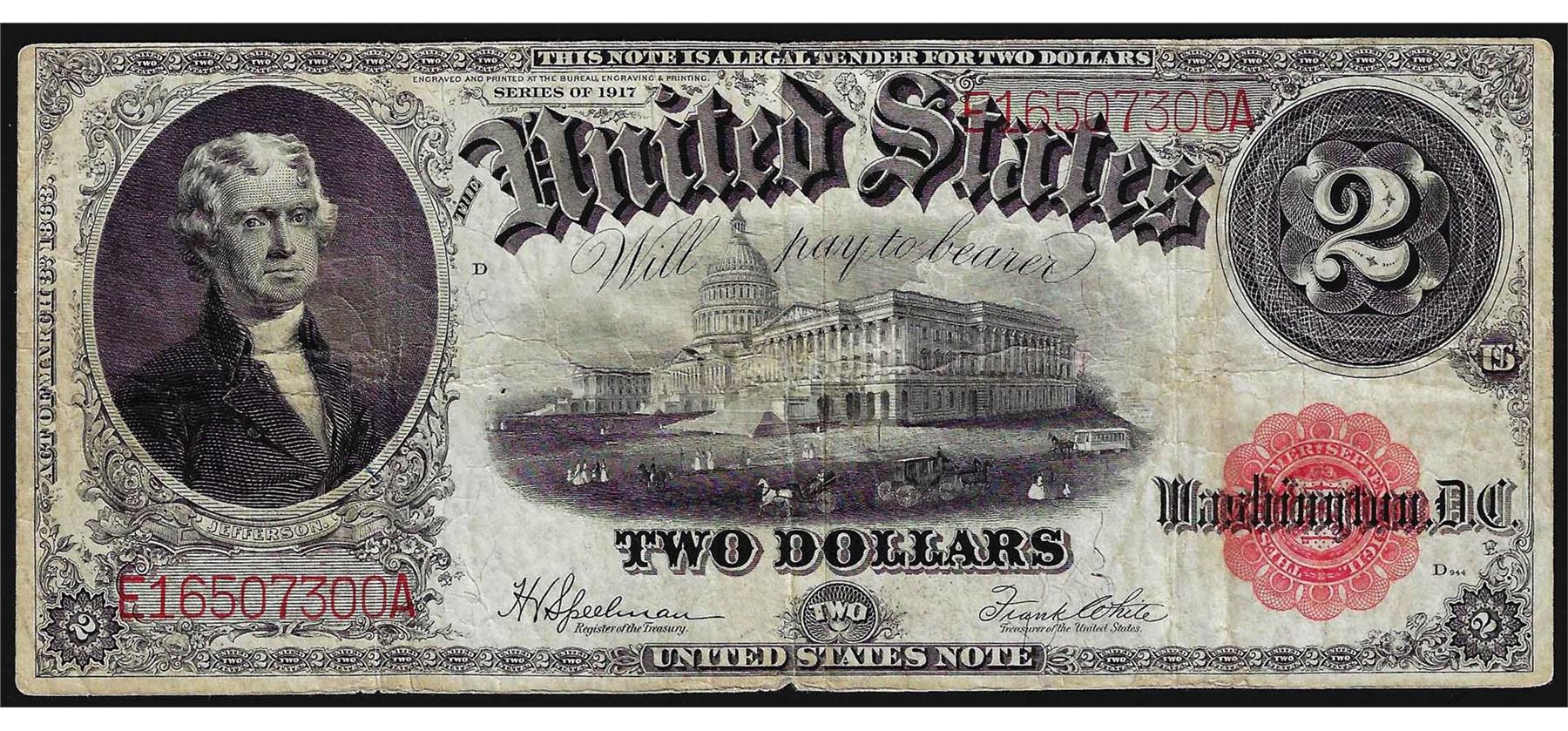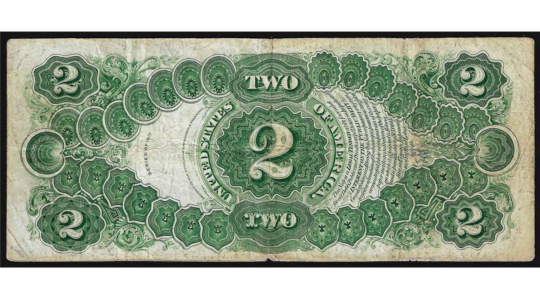 One 1917 $2 Legal Tender Note.