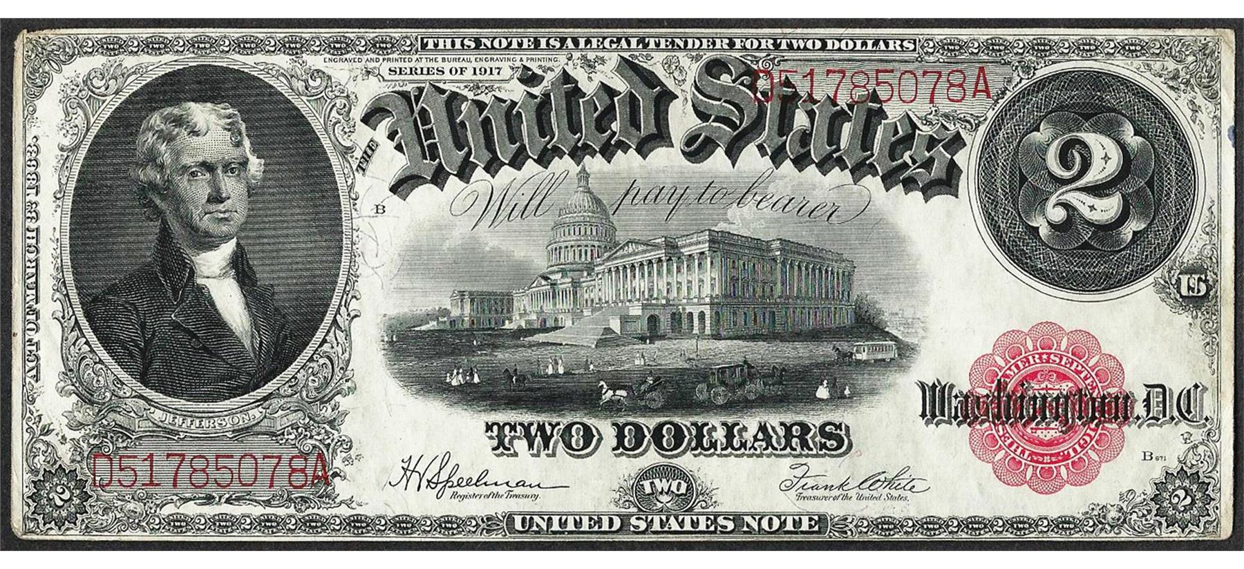 One 1917 $2 Legal Tender Note.