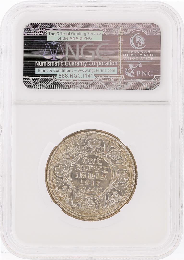 One 1917(B) India Rupee Silver Coin NGC MS62. NGC Certified.