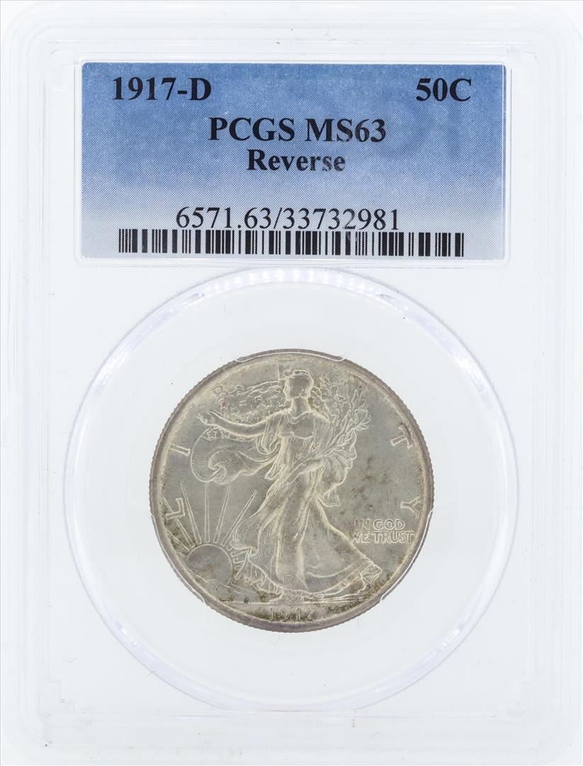 One 1917-D Walking Liberty Half Dollar Coin PCGS MS63 Reverse. PCGS Graded.