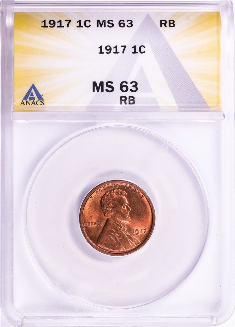 One 1917 Lincoln Wheat Cent Coin ANACS MS63 RB. ANACS Certified.