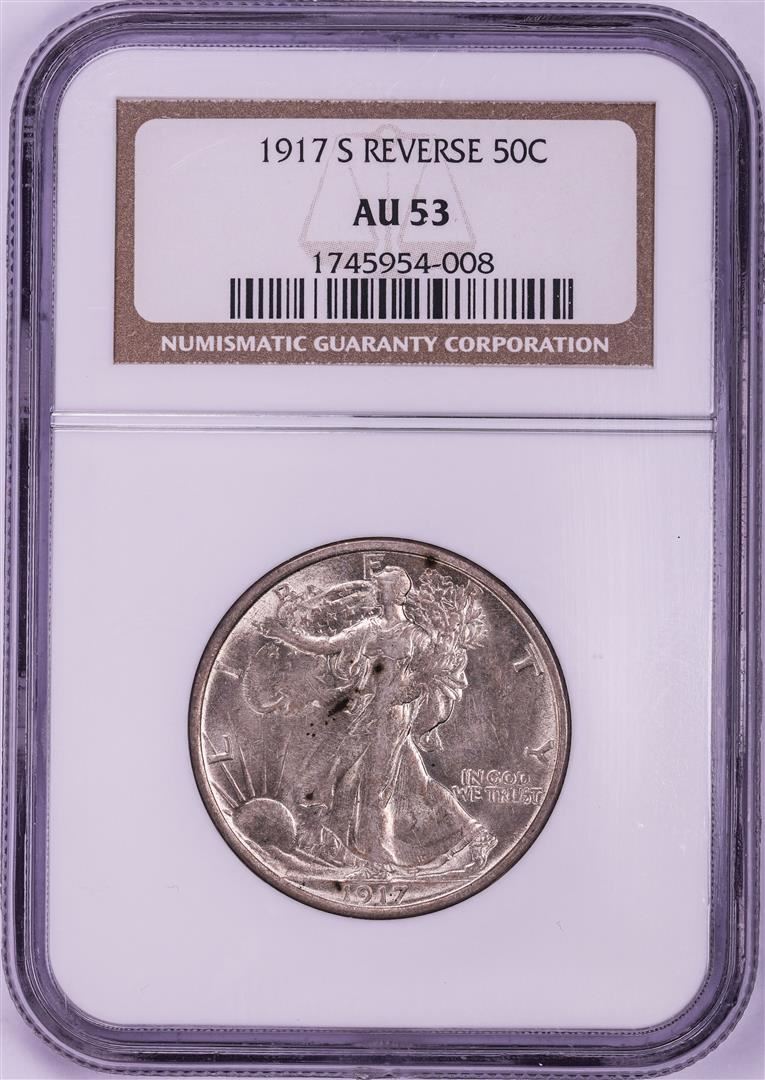 One 1917-S Reverse Walking Liberty Half Dollar Coin NGC AU53. NGC Certified.