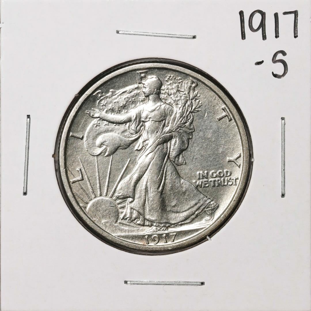 One 1917-S Reverse Walking Liberty Half Dollar Coin.