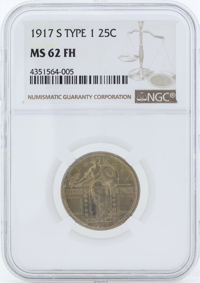 One 1917-S Standing Liberty Quarter Type 1 NGC MS62 FH. NGC Certified.