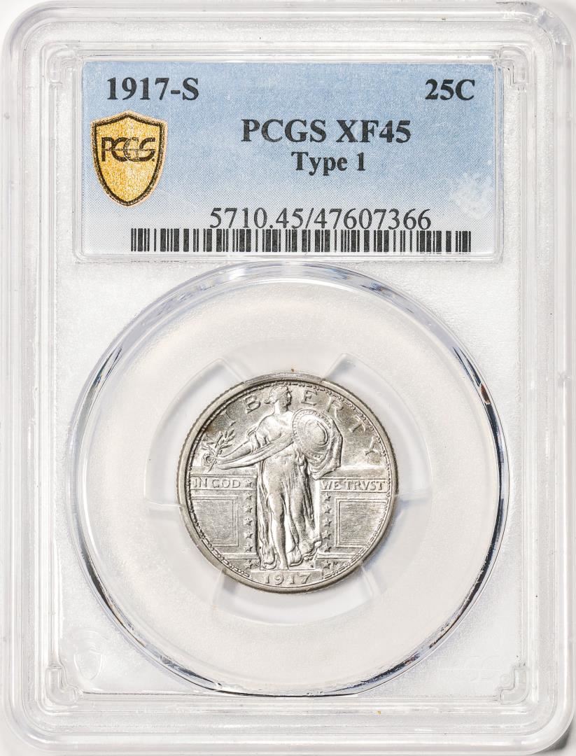 One 1917-S Type 1 Standing Liberty Quarter Coin PCGS XF45. PCGS Graded.