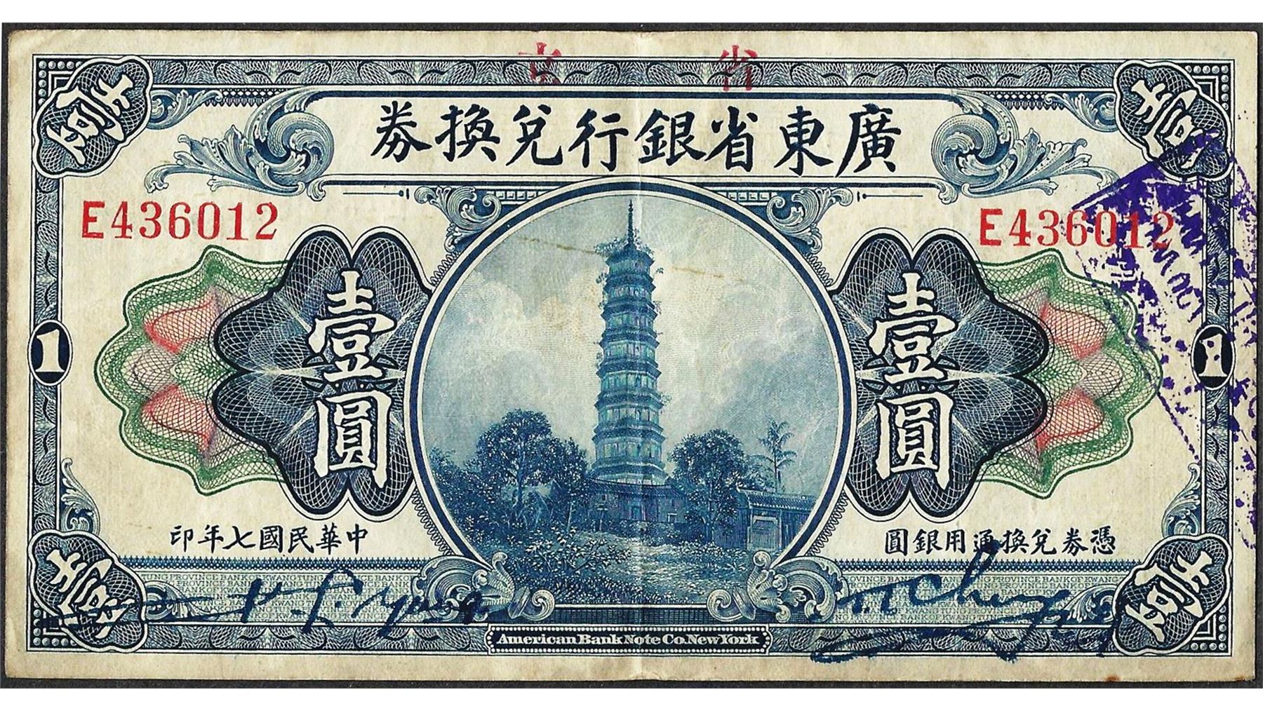 One 1918 $1 Canton Provincial Bank of Kwang Tung Province Currency Note.
