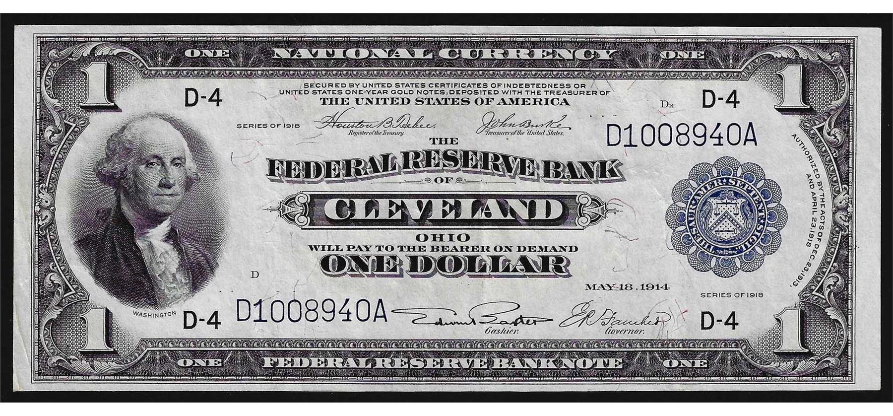 One 1918 $1 Federal Reserve Bank Note Cleveland.