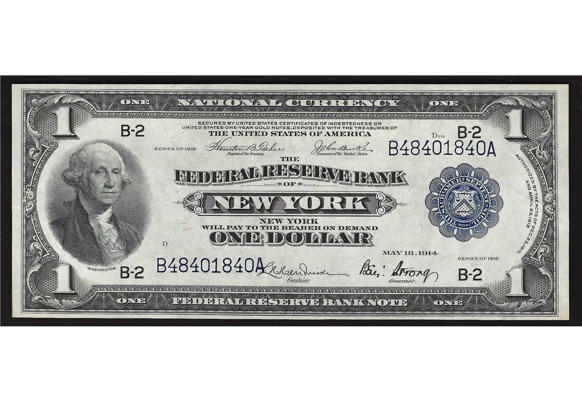 One 1918 $1 Federal Reserve Bank Note New York.