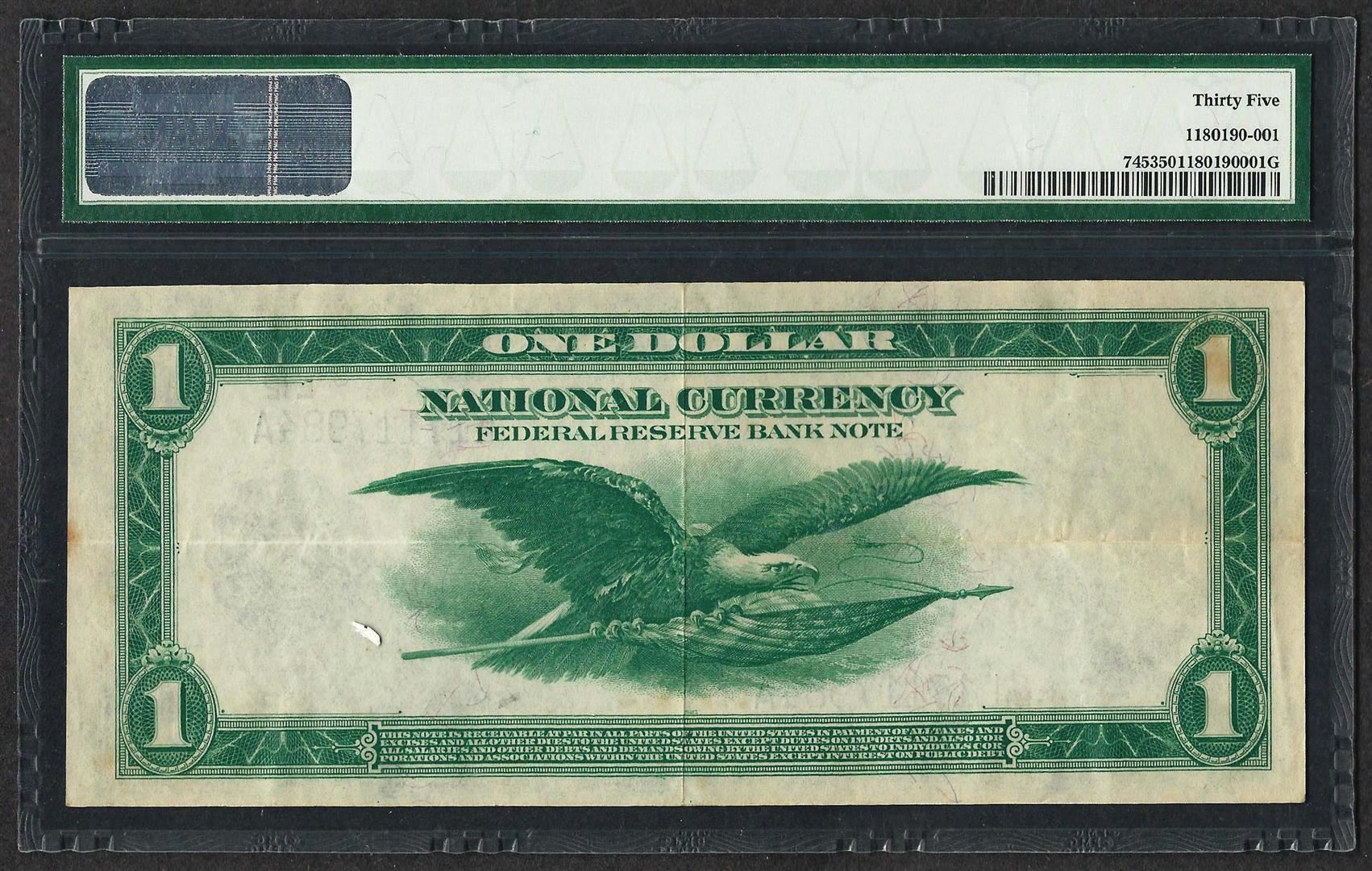 One 1918 $1 Federal Reserve Bank Note San Francisco Fr.745 PMG Choice Very Fine 35. PMG Certified.