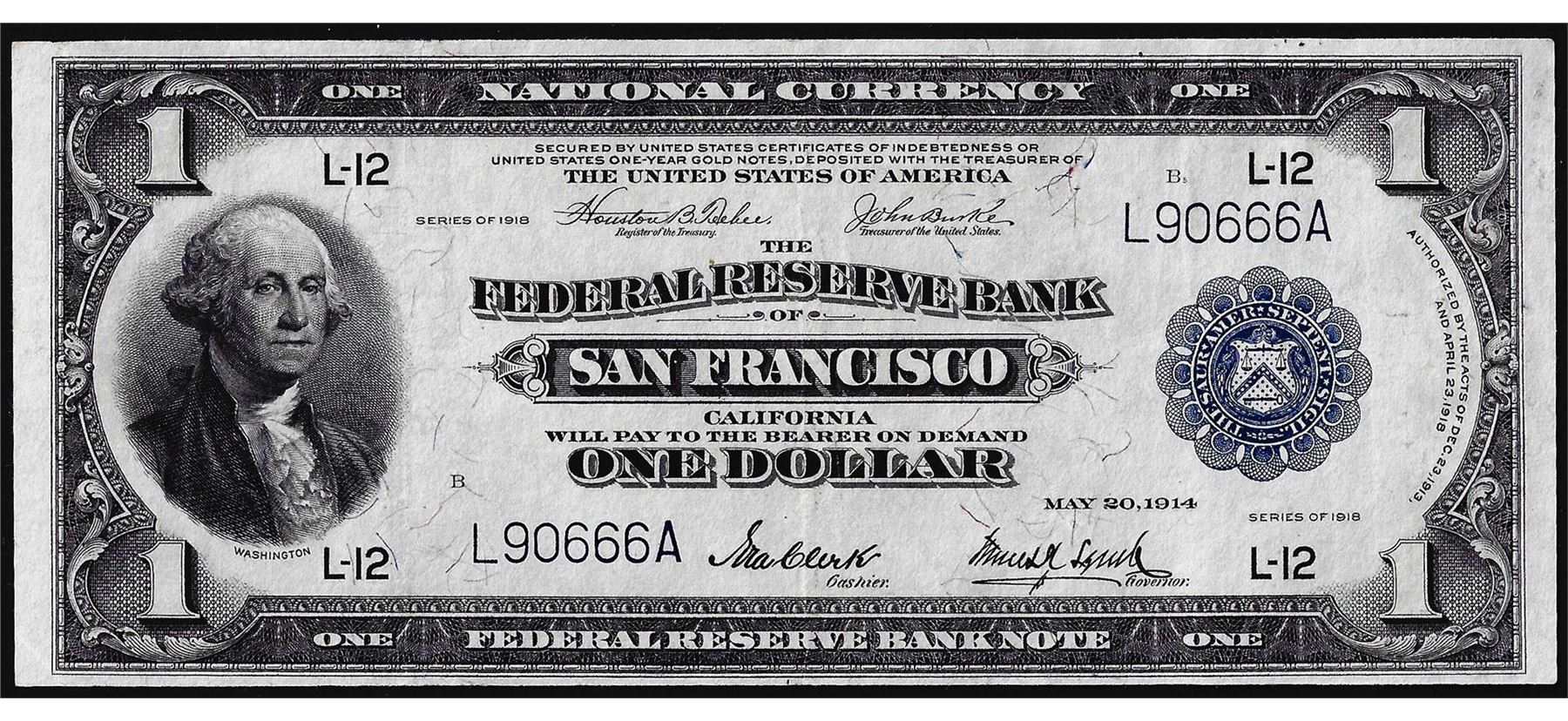 One 1918 $1 Federal Reserve Bank Note San Francisco.