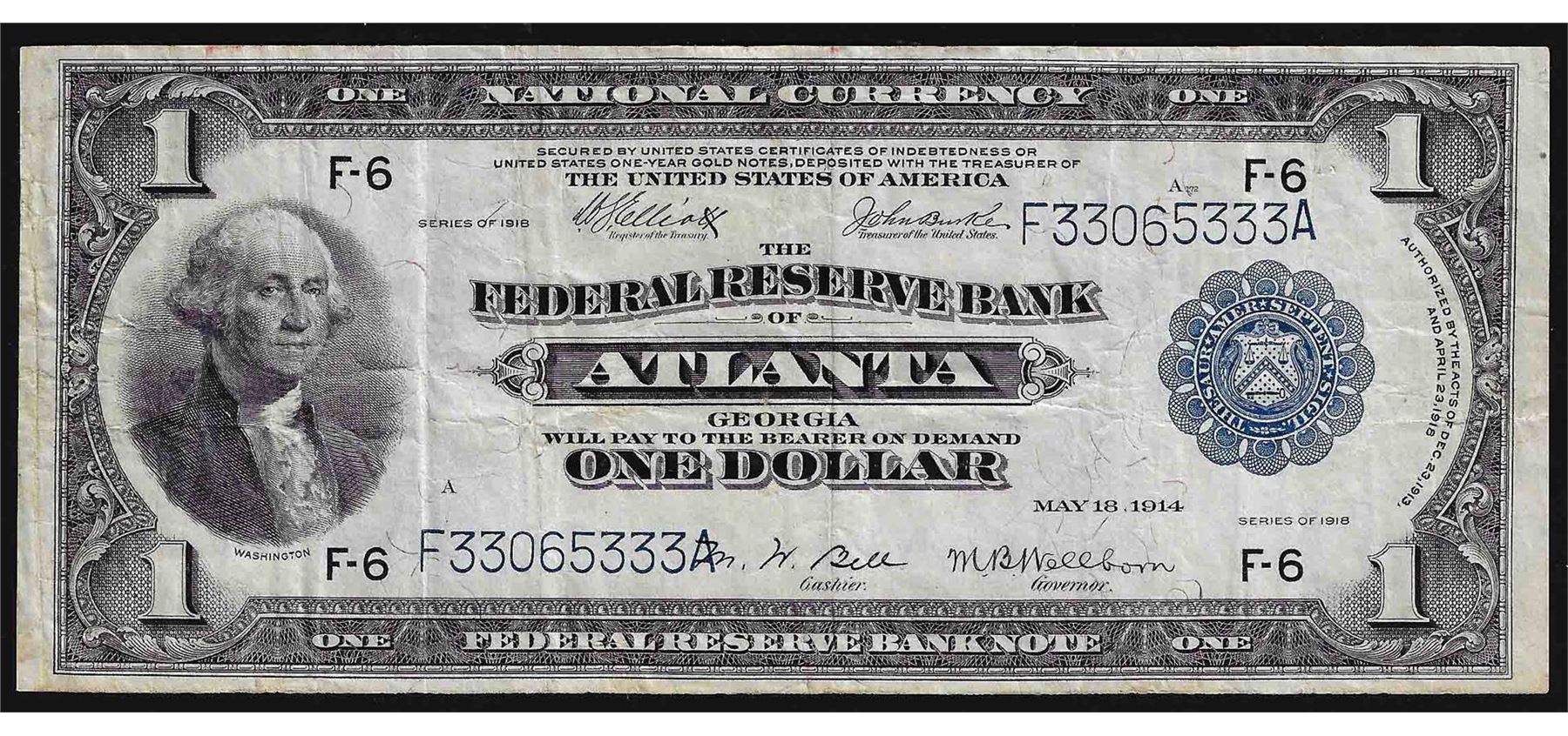 1918 $1 Federal Reserve Bank of Atlanta National Currency Note