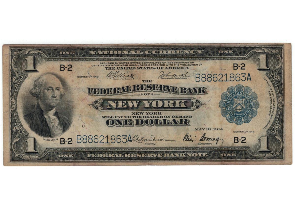 One 1918 $1 Flying Eagle Federal Reserve Bank Note. Origin: New York.