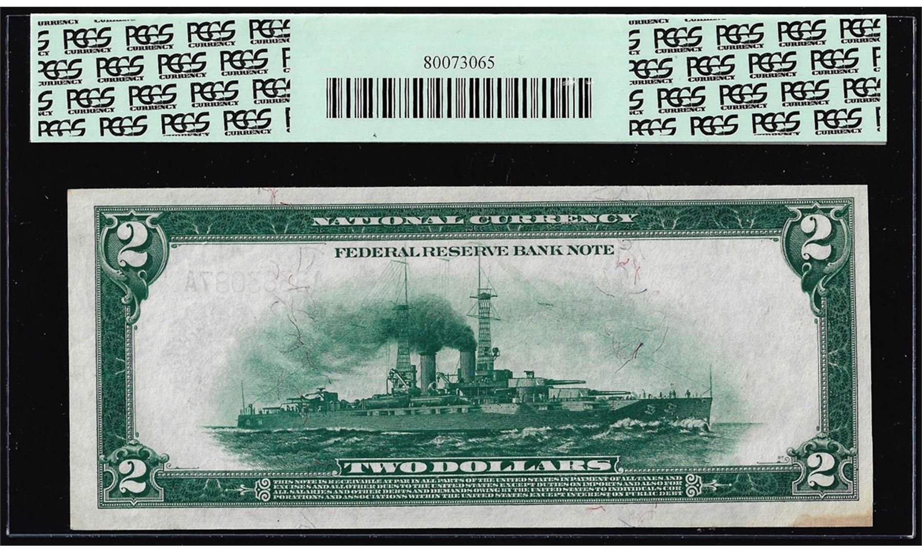 One 1918 $2 Battleship Federal Reserve Bank Note Boston Fr.749 PCGS New 62. PCGS Graded.