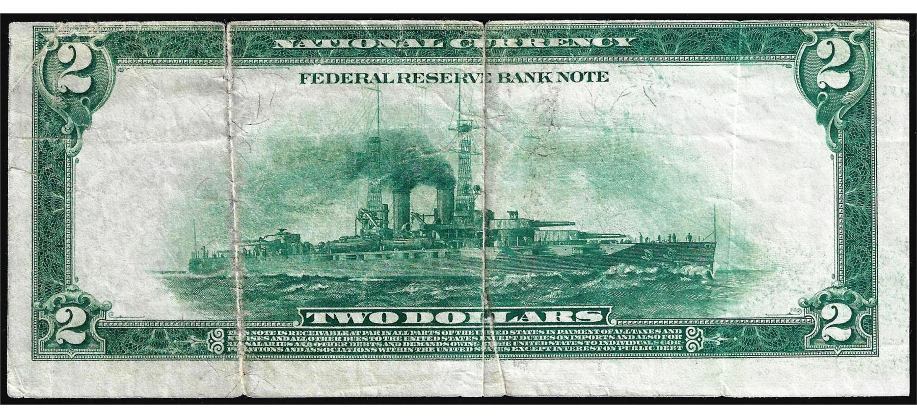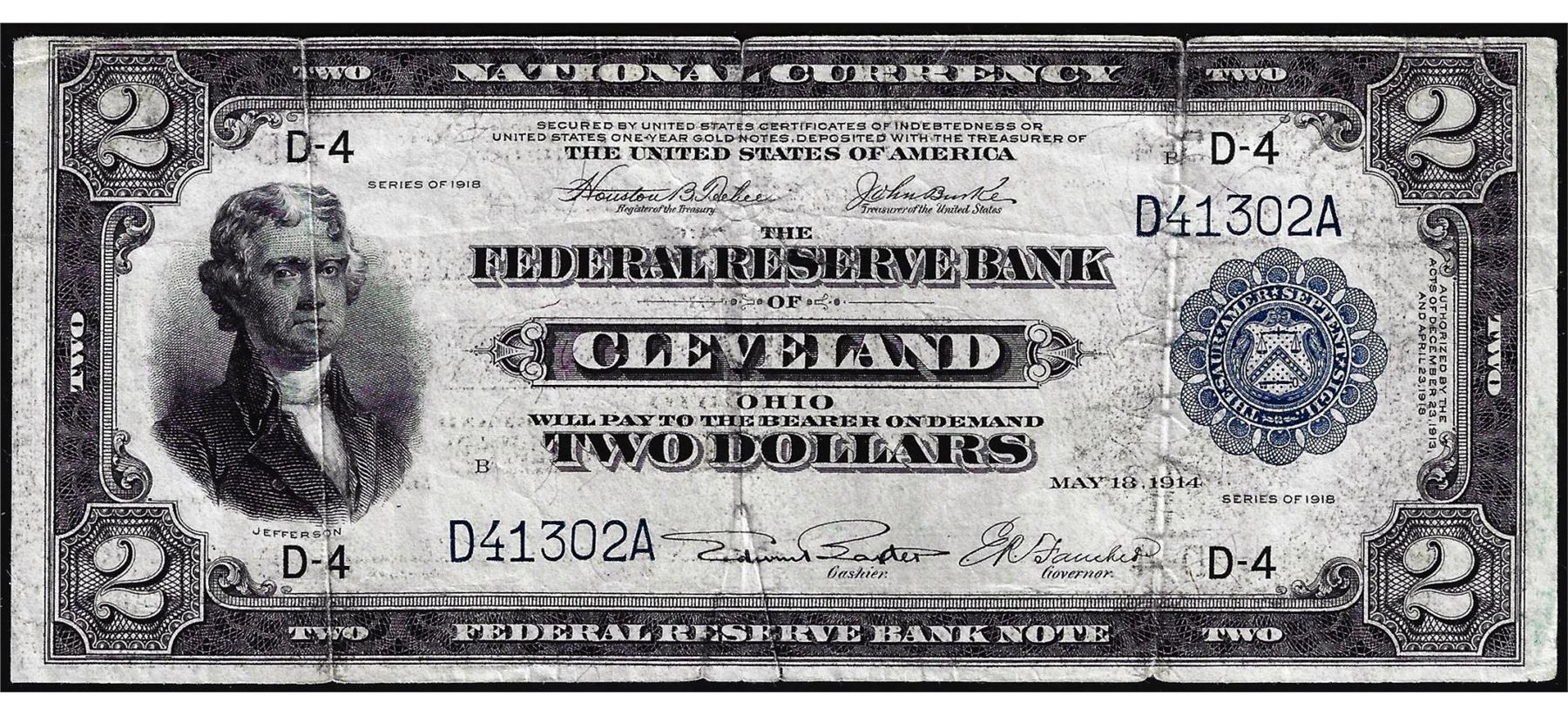 One 1918 $2 Battleship Federal Reserve Bank Note Cleveland.