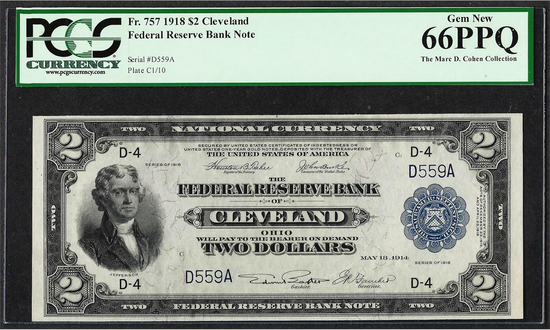 One 1918 $2 Battleship Federal Reserve Bank Note Fr.757 PCGS Gem New 66PPQ. PCGS Graded.