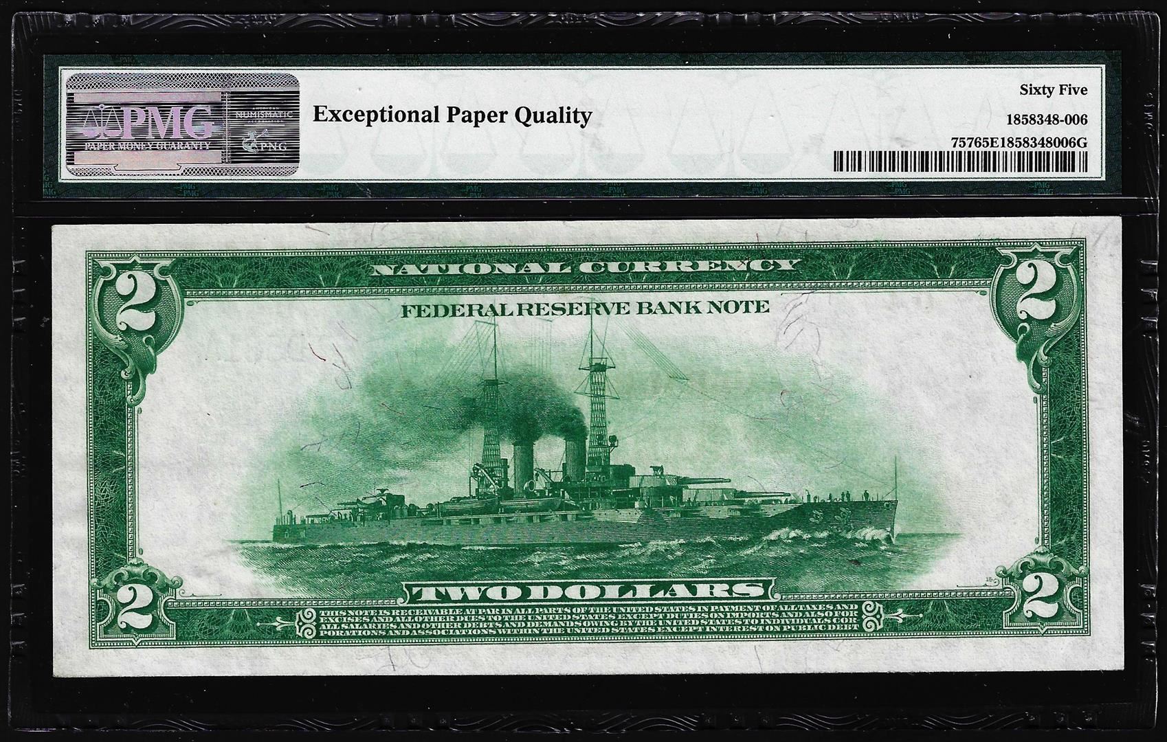 One 1918 $2 Federal Reserve Bank Note Cleveland Fr.757 PMG Gem Uncirculated 65EPQ. PMG Certified.