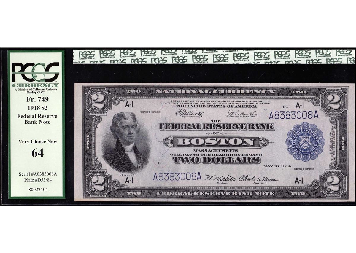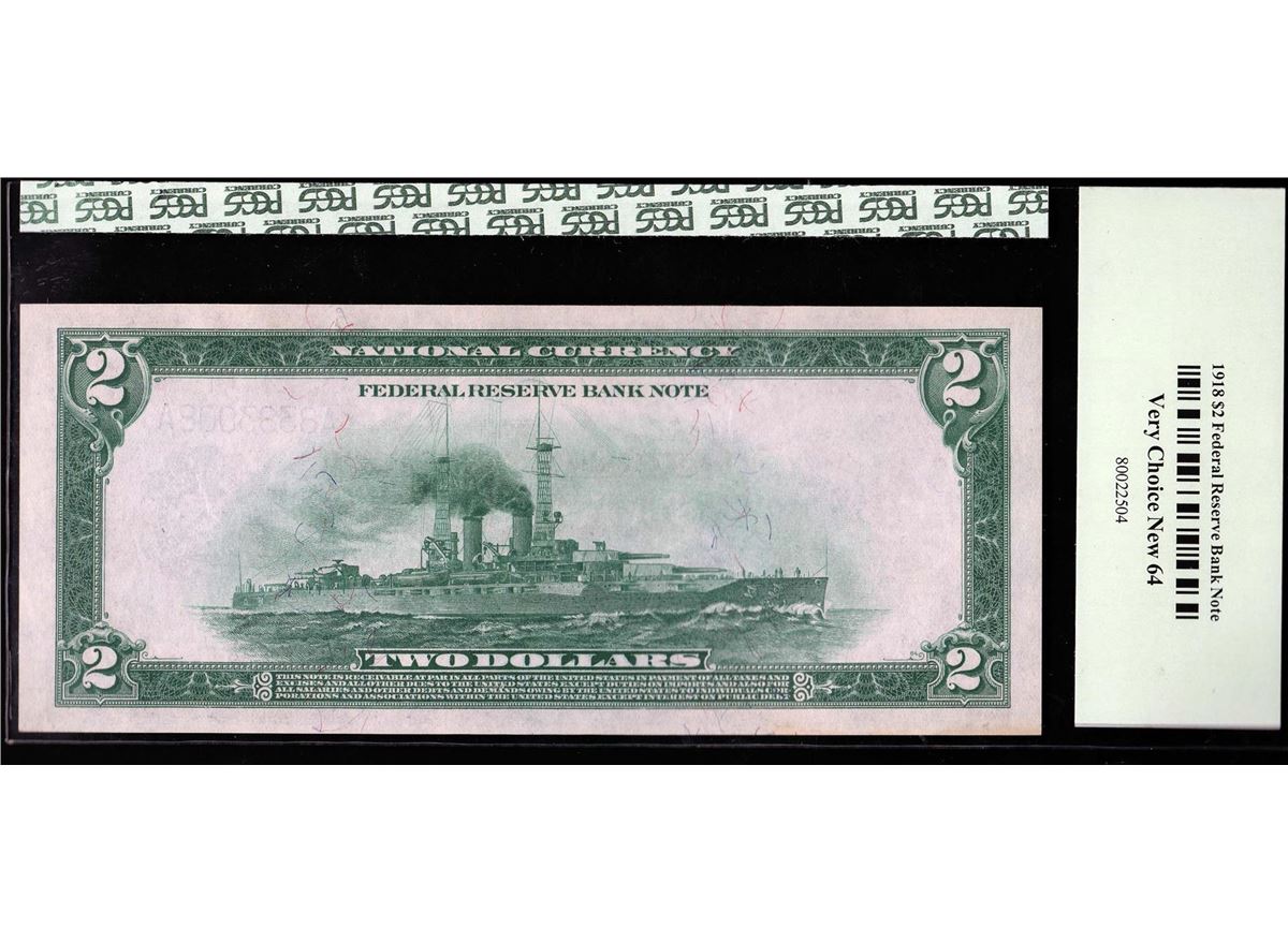 One 1918 $2 Federal Reserve Bank Note PCGS Very Choice New 64. PCGS Graded.