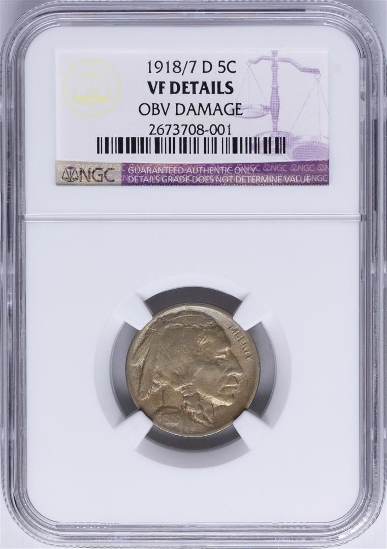 One 1918/7 Overdate Buffalo Nickel Coin NGC VF Details. NGC Certified.
