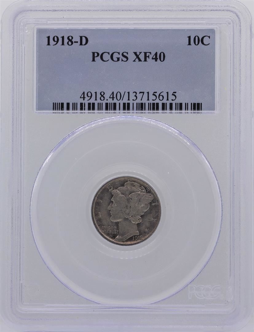 One 1918-D Mercury Dime Coin PCGS XF40. PCGS Graded.