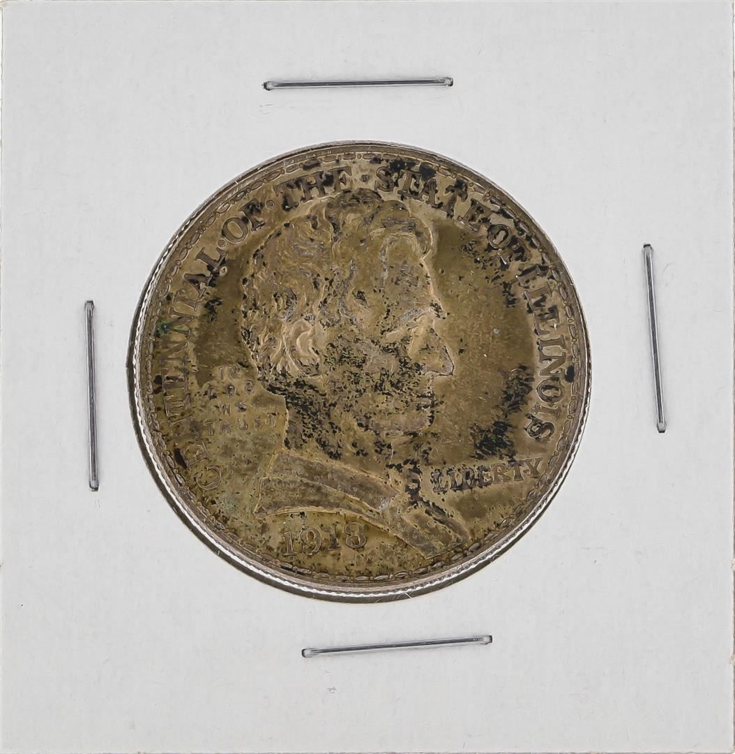 One 1918 Illinois Centennial Commemorative Half Dollar Coin.