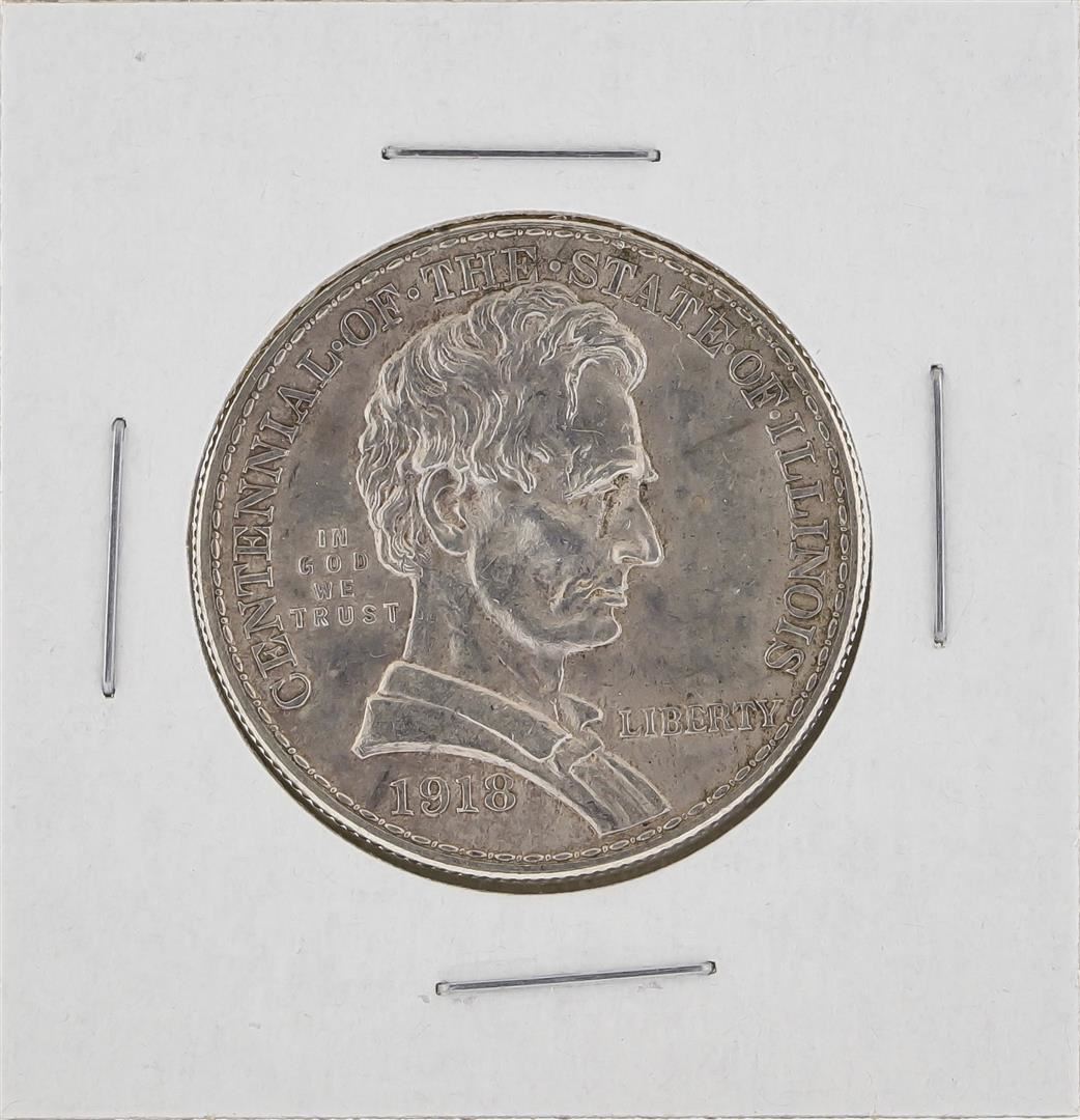 One 1918 Illinois Centennial Commemorative Half Dollar Coin.