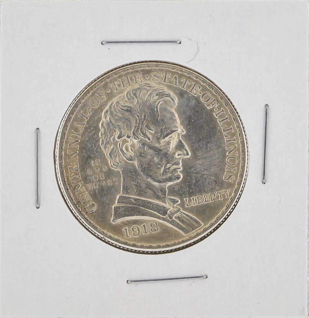 One 1918 Illinois Centennial Commemorative Half Dollar Coin.