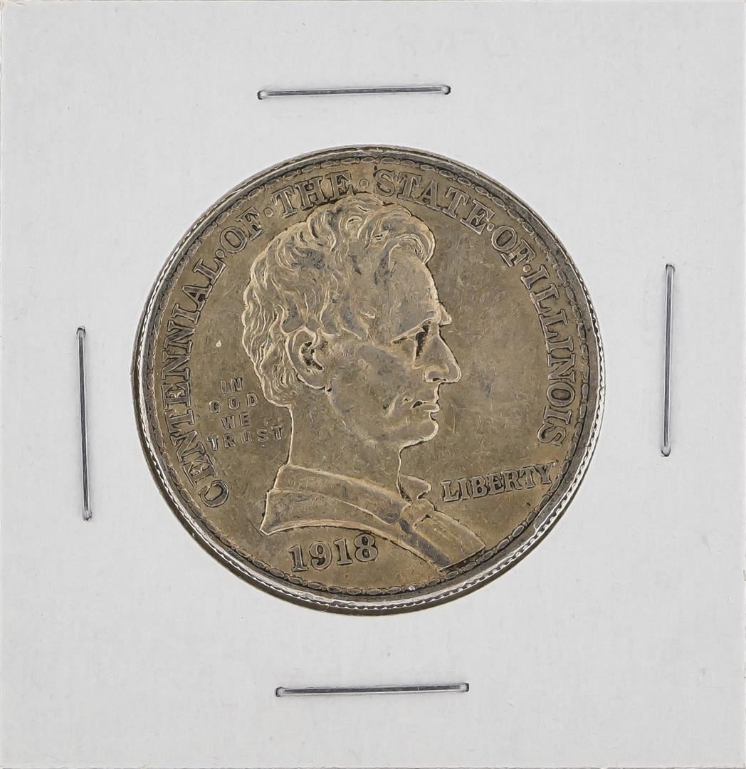One 1918 Illinois Centennial Commemorative Half Dollar Coin.