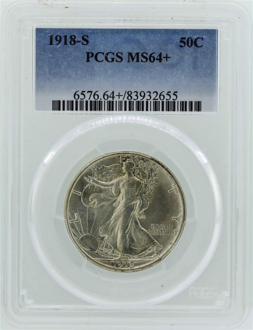 One 1918-S Walking Liberty Half Dollar Coin PCGS MS64+. PCGS Graded.