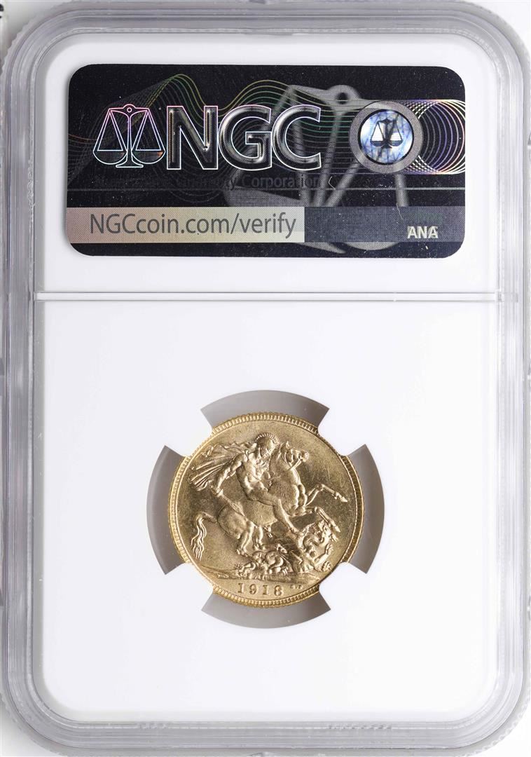 One 1918I India Sovereign Gold Coin NGC MS64. NGC Certified.
