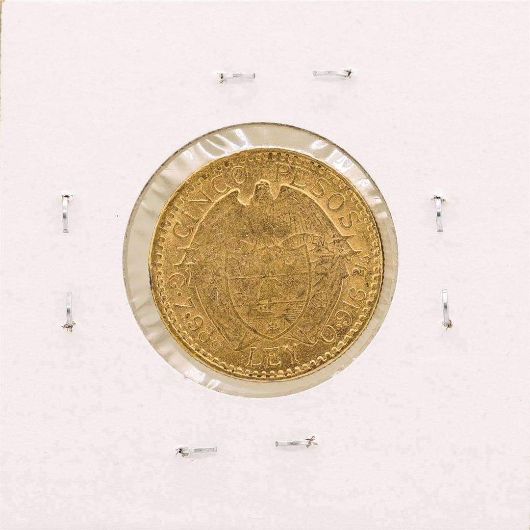 One 1919 Columbia 5 Pesos Gold Coin.