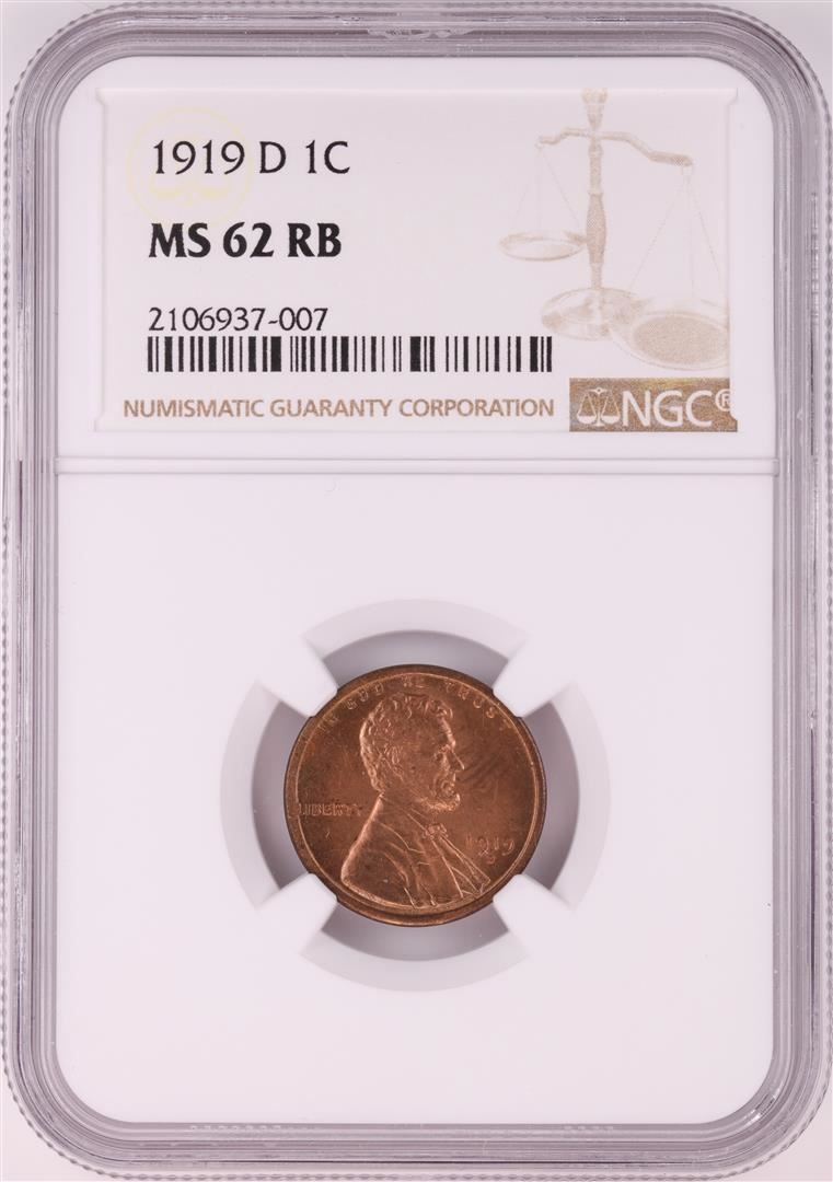 One 1919-D Lincoln Wheat Cent Coin NGC MS62RB. NGC Certified.