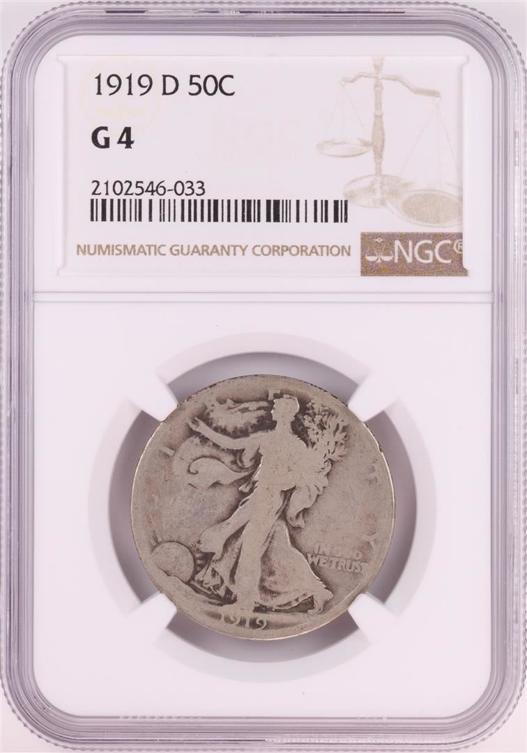 One 1919-D Walking Liberty Half Dollar Coin NGC G4. NGC Certified.