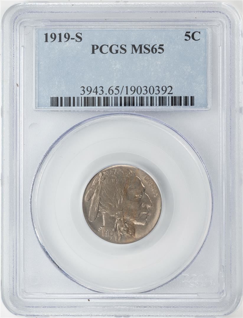 One 1919-S Buffalo Nickel Coin PCGS MS65. PCGS Graded.