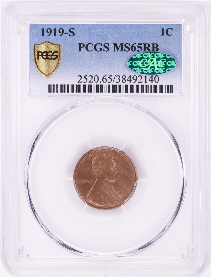 One 1919-S Lincoln Wheat Cent Coin PCGS MS65RB CAC. PCGS Graded.