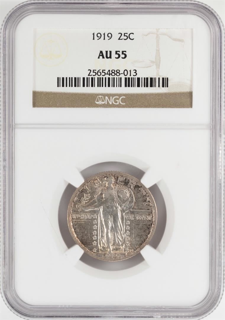 One 1919 Standing Liberty Quarter Coin NGC AU55. NGC Certified.