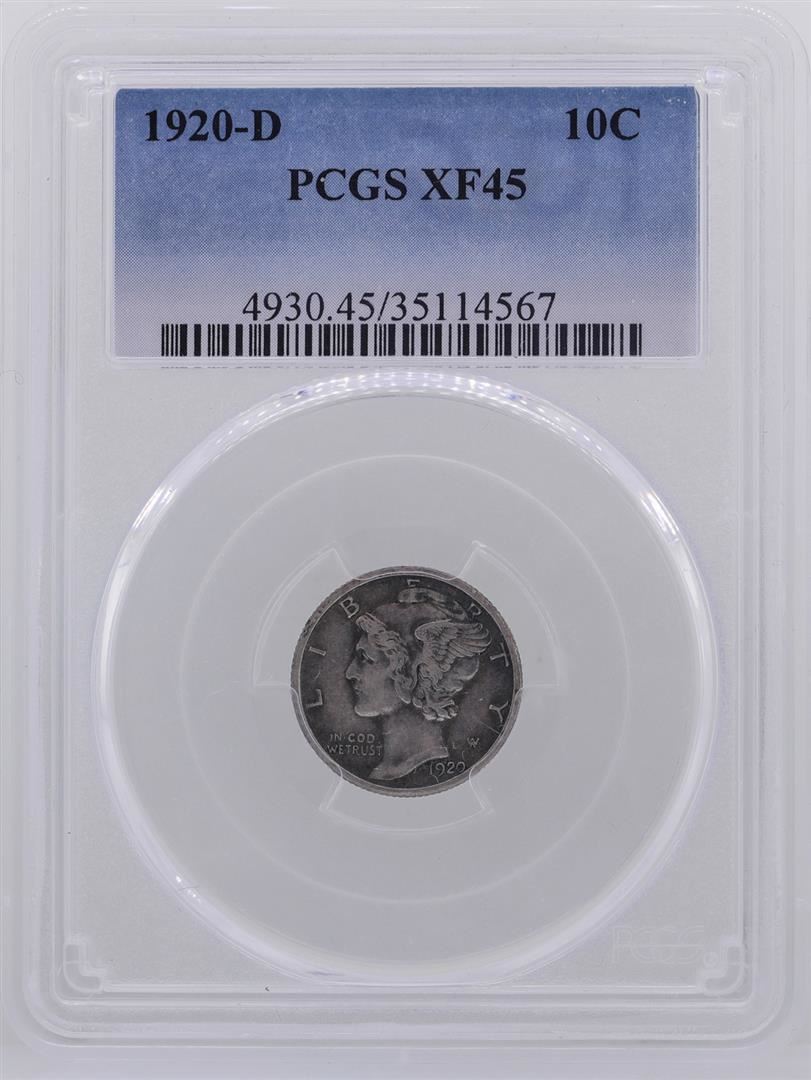 One 1920-D Mercury Dime Coin PCGS XF45. PCGS Graded.