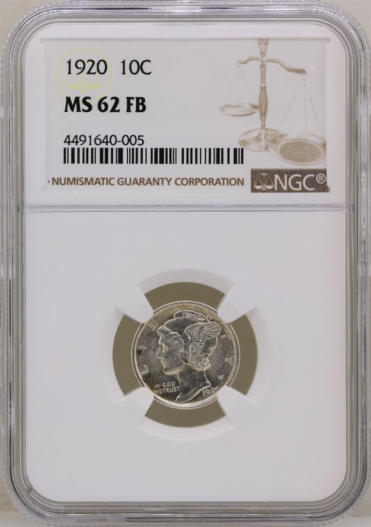 One 1920 Mercury Dime Coin NGC MS62FB. NGC Certified.
