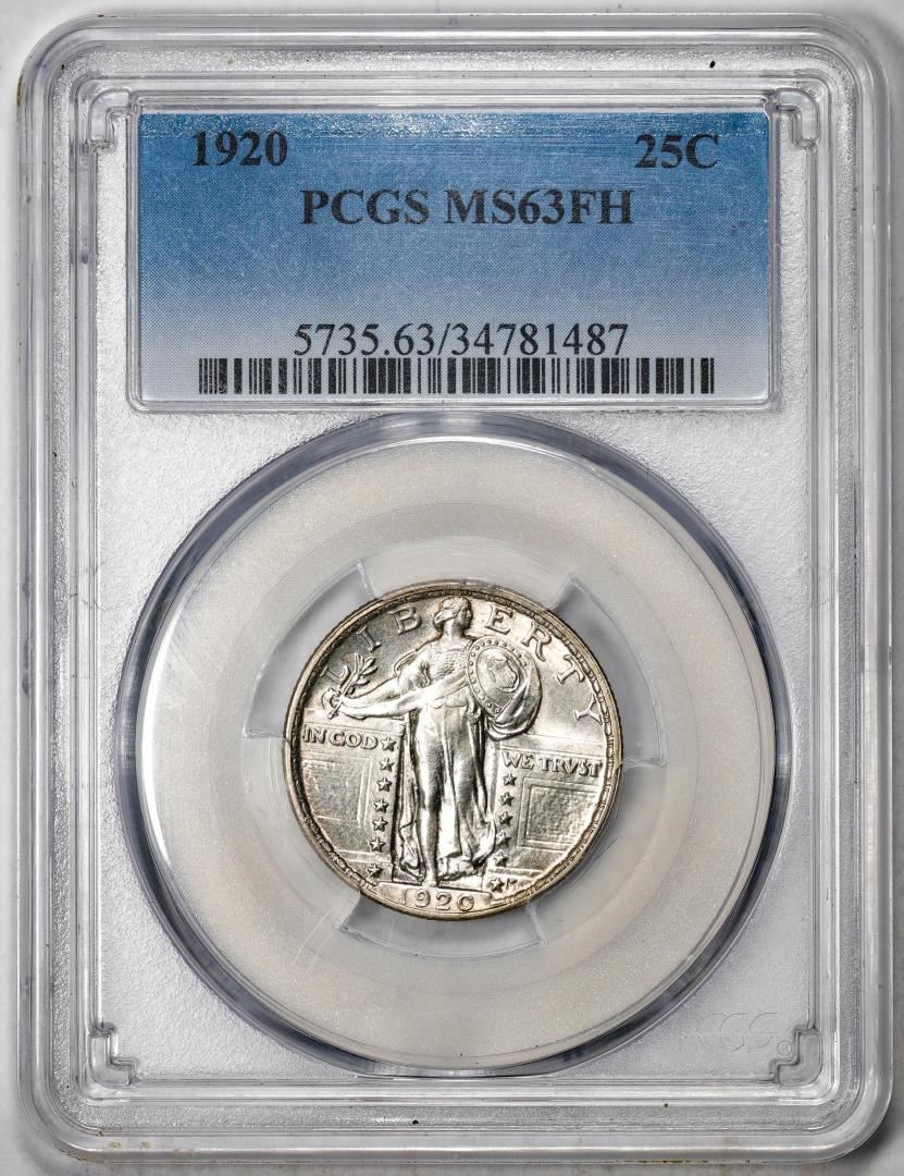 One 1920 Standing Liberty Quarter Coin PCGS MS63FH. PCGS Graded.