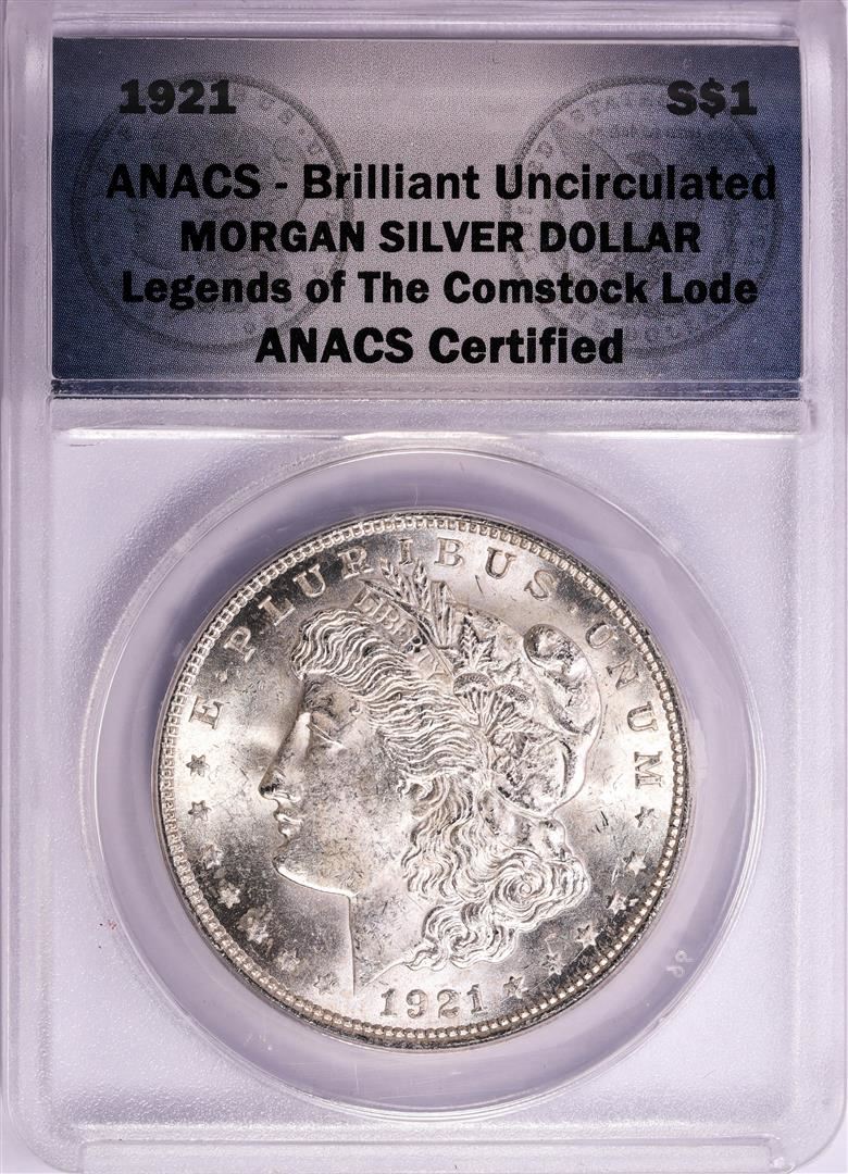 1921 $1 Morgan Silver Dollar Coin ANACS Brilliant Uncirculated