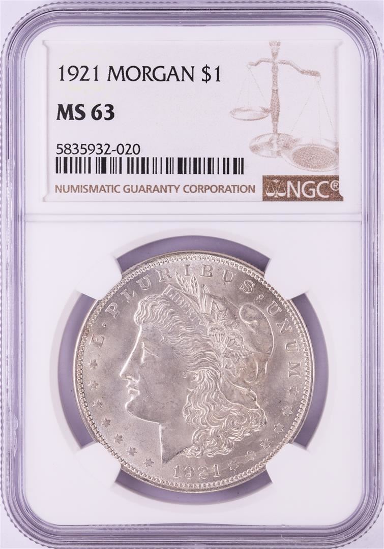 1921 $1 Morgan Silver Dollar Coin NGC MS63