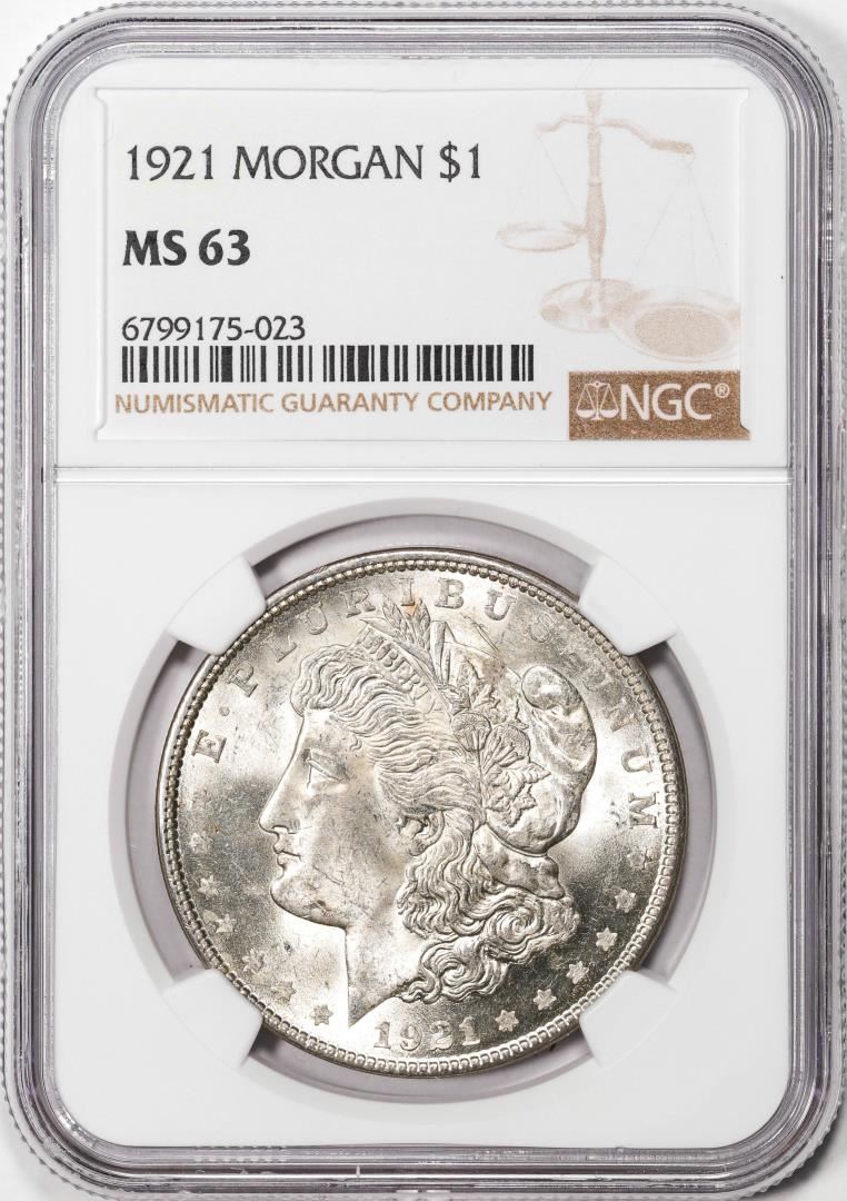One 1921 $1 Morgan Silver Dollar Coin NGC MS63. NGC Certified.