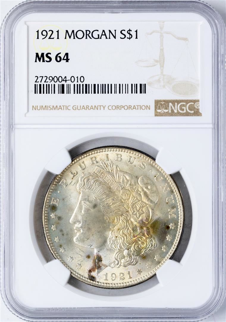 One 1921 $1 Morgan Silver Dollar Coin NGC MS64. NGC Certified.