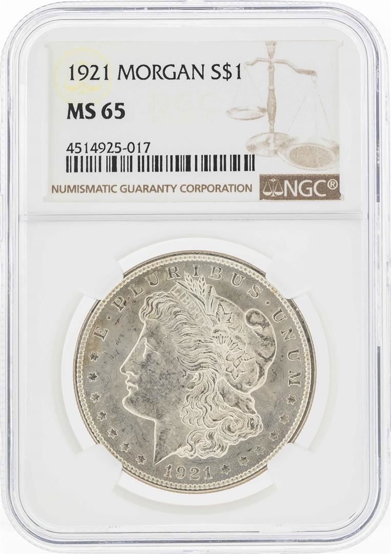 One 1921 $1 Morgan Silver Dollar Coin NGC MS65. NGC Certified.