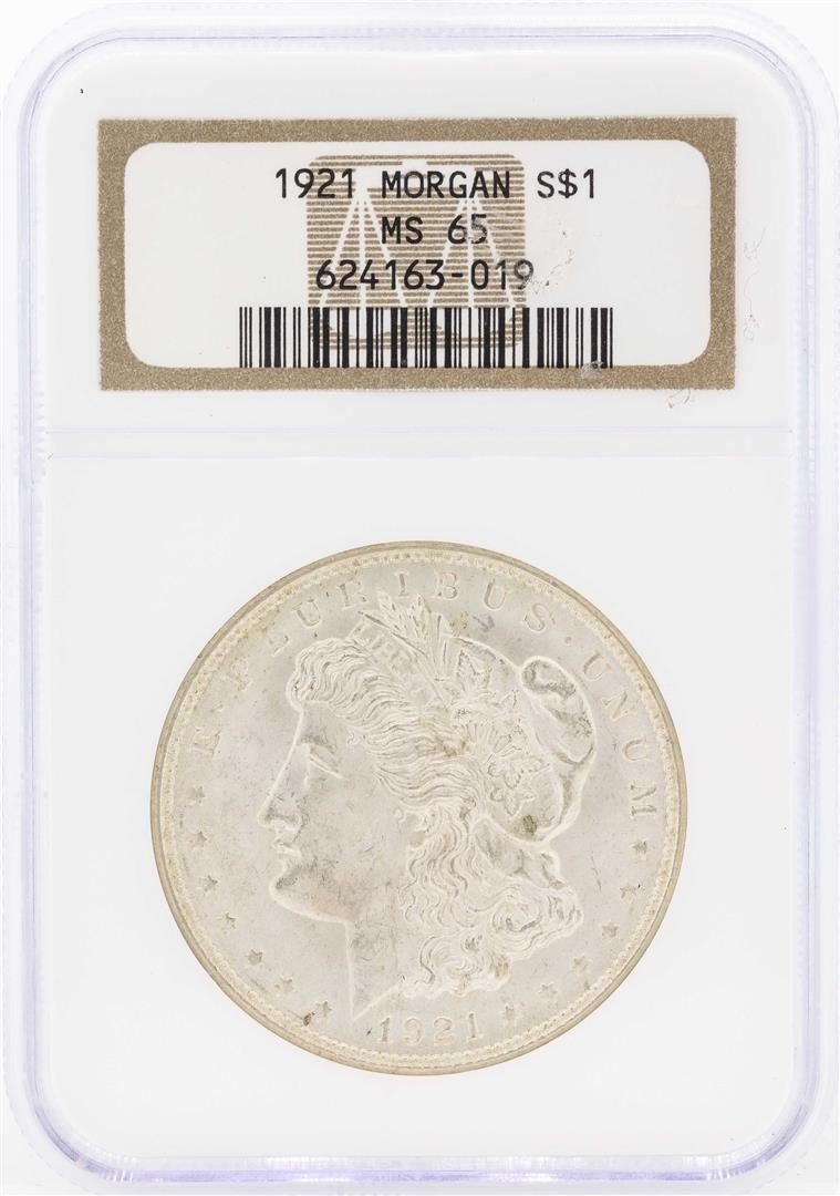 One 1921 $1 Morgan Silver Dollar Coin NGC MS65. NGC Certified.