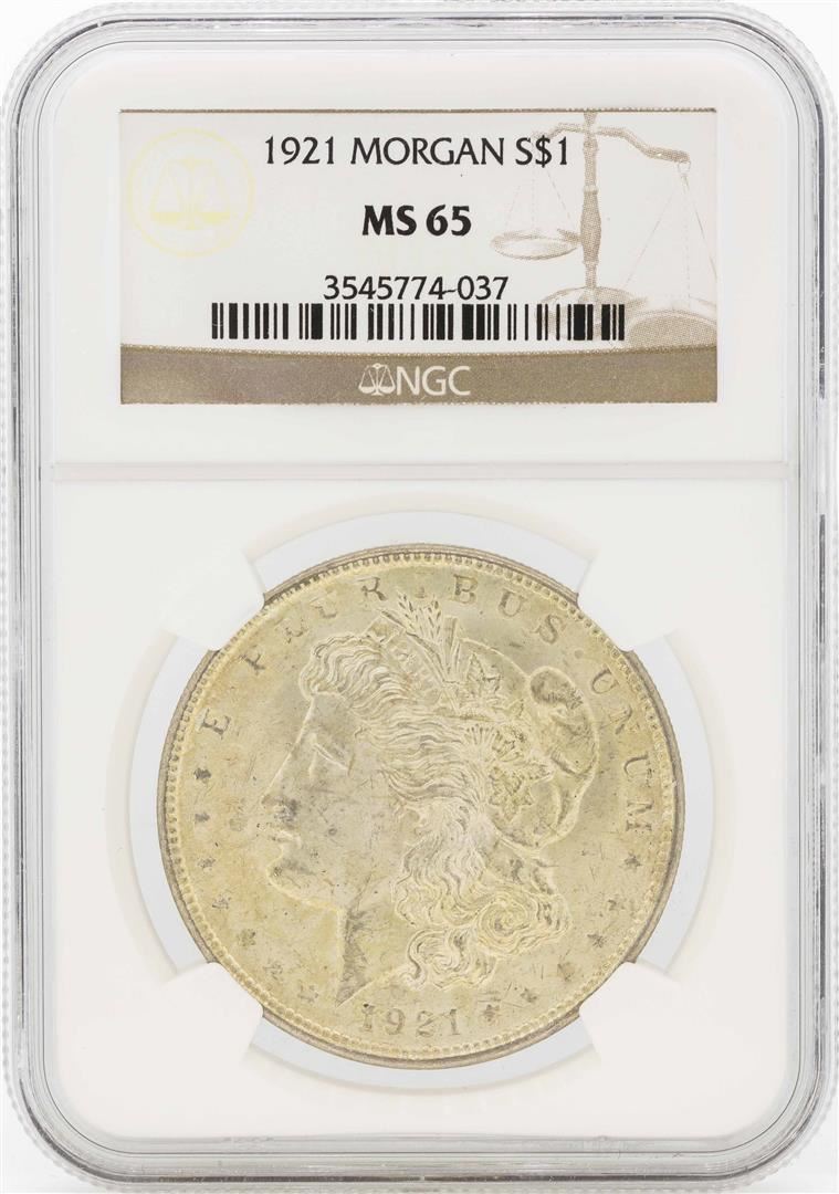 One 1921 $1 Morgan Silver Dollar Coin NGC MS65. NGC Certified.