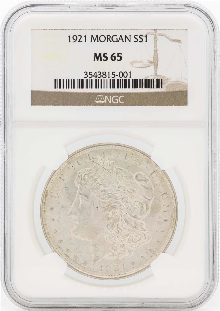 One 1921 $1 Morgan Silver Dollar Coin NGC MS65. NGC Certified.